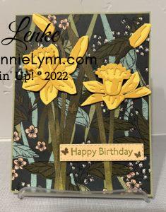 Can you believe it’s already a New Year. Happy 2022. To Celebrate the New Year and the New January to June Mini Catalogue, Stampin’ Up is having a SALE a-bration. With every $50 in merchandise you order at one time between January 4th and February 28th you get to pick an item out of the SALE a-bration Catalog (Catalogues are attached below). Quantities are limited to stock on hand. Check out my card below using the Daffodil Afternoon Designer Series Paper that you can earn free with your order. I’m also featuring the Daffodil Daydream Bundle. I love this set.