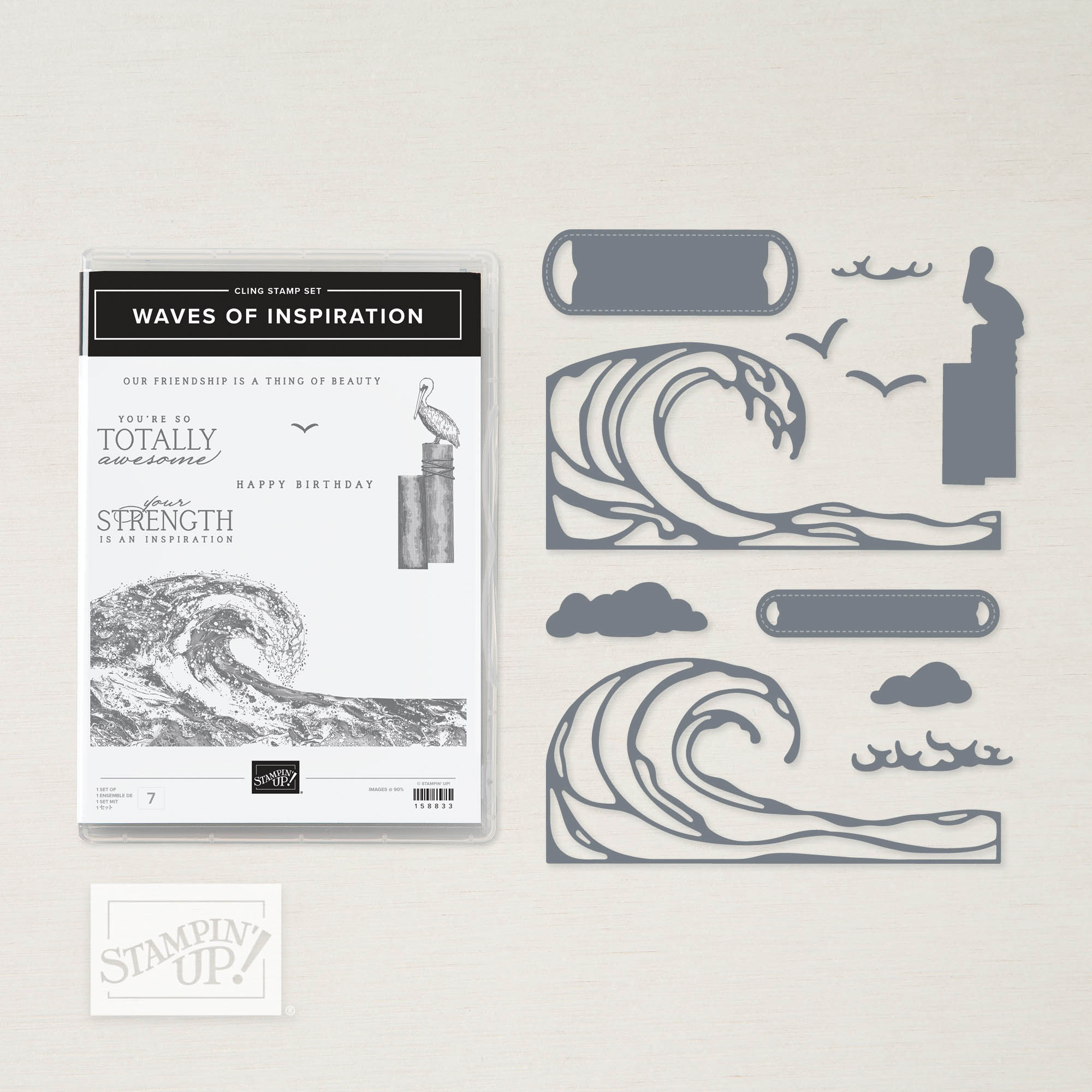 I used the Stampin’ Up! Wave of Inspiration Bundle that is just available on March 1st. This Stamp Set and Dies will also be in the new annual catalog May 2nd. The Waves of The Ocean Designer Series Paper, Blue Foils and Rhinestone Waves Basic Jewels are only available while supplies last. I love the paper but the Blue Foils and Rhinestone Jewels are some blue and perfect. This complete suite was a must have for me with as much as I love the ocean. Since the items do not come online till March 1st I’m posting a couple pictures for you the items.