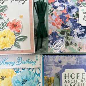 This 4 card tutorial includes 4 cards, of which 3 are fun folds. Featured stamp set is the Two-Tone stamp and dies. Works with any Designer Series Paper. These cards were designed to work with any floral stamp set.Video tutorial link is in the directions.