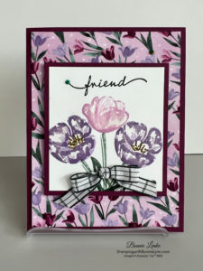 Today I’m sharing the Flowering Fields Designer Series Paper with you before it retires at the end of the month. I’m going to miss this paper; it is so pretty. Right now, you can still purchase it at a savings of 30% while supplies last through June 30th. The Flowering Tulips Bundle with it’s bundle savings is only good through June 30th, after that the stamp set and dies are still available separately.