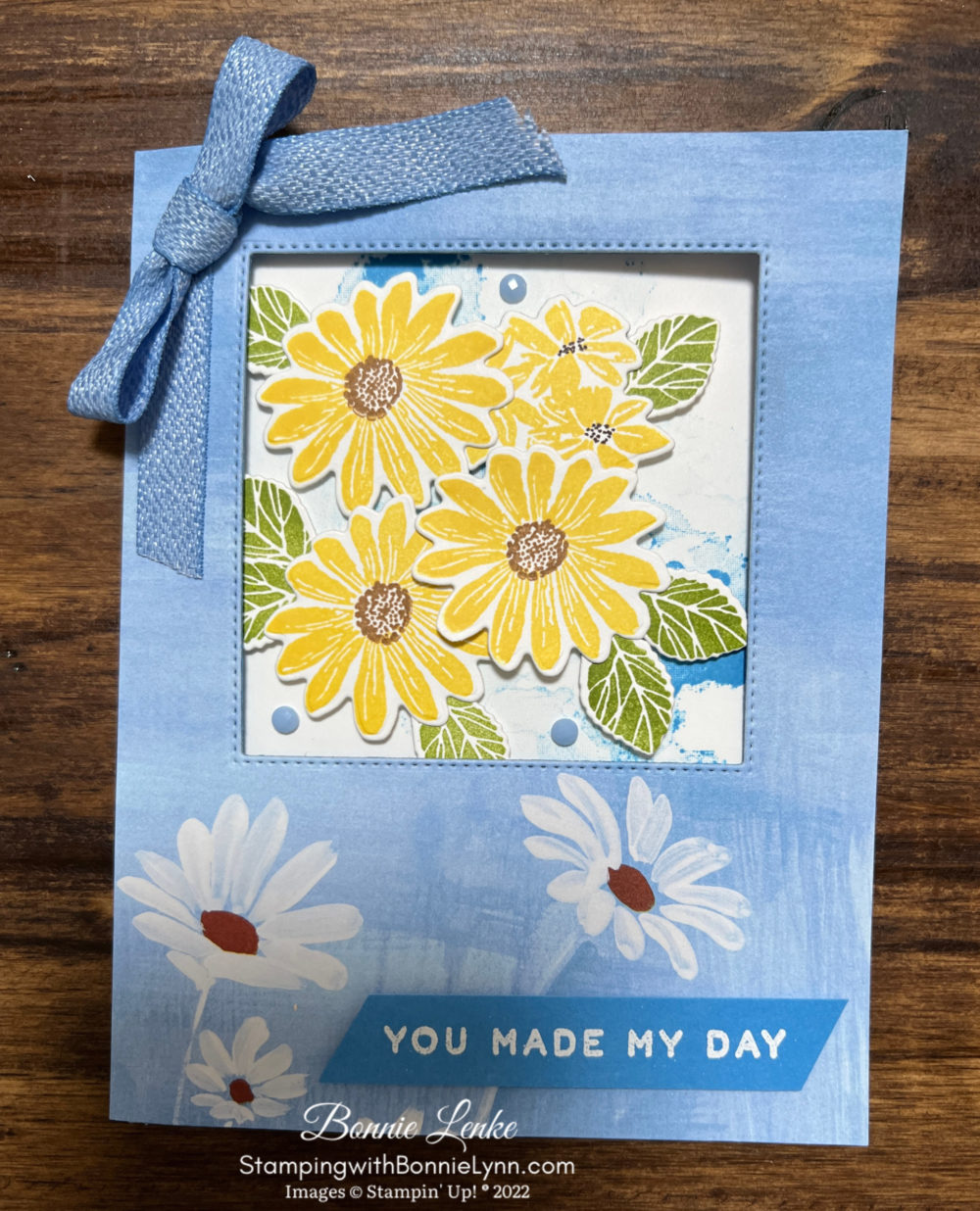- Cardstock/Paper: Azure Afternoon, Basic White, Fresh As a Daisy DSP