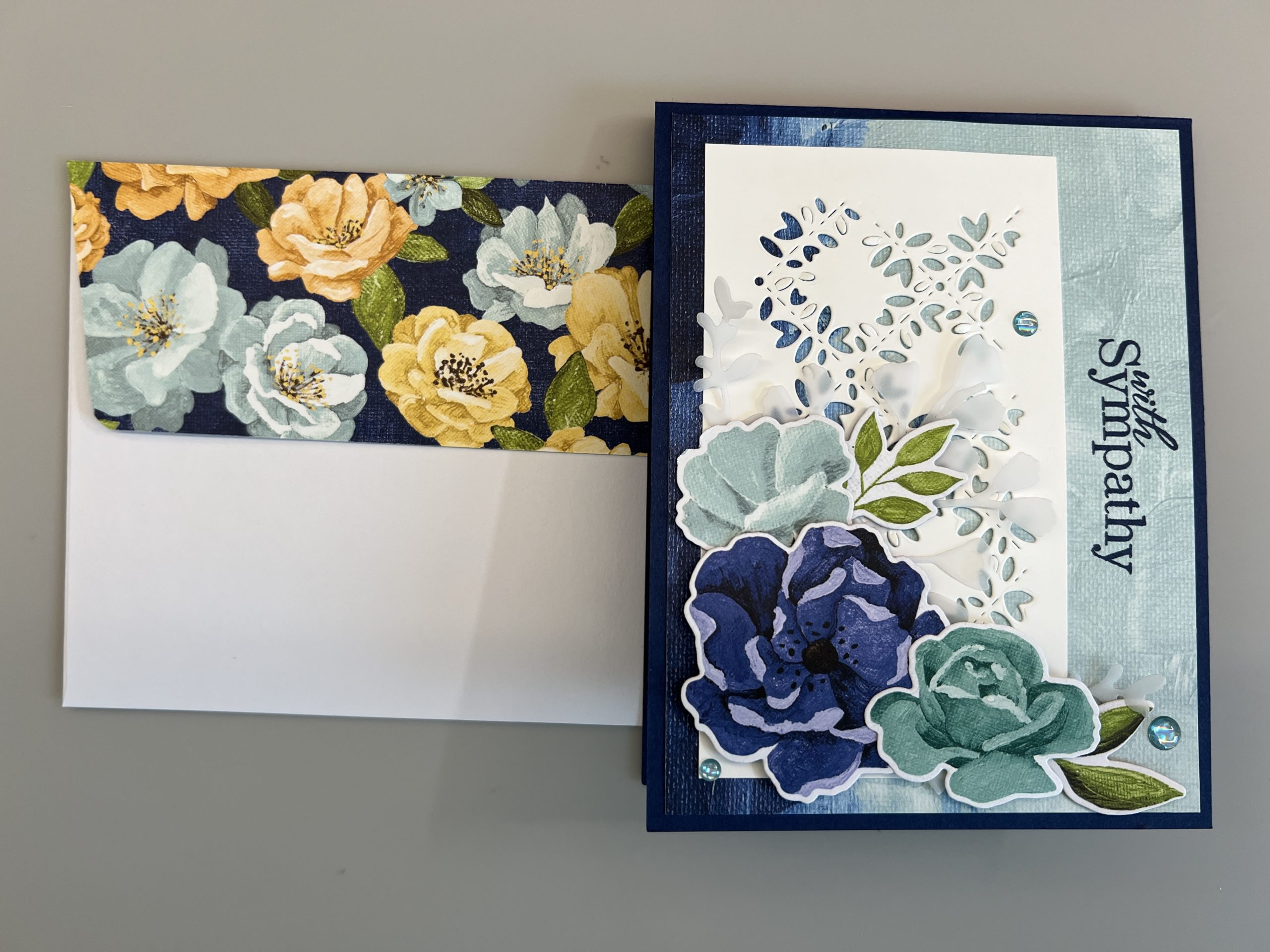 - Using glue, seal or tape adhere the 2 pieces of Designer Series Paper to card inside.