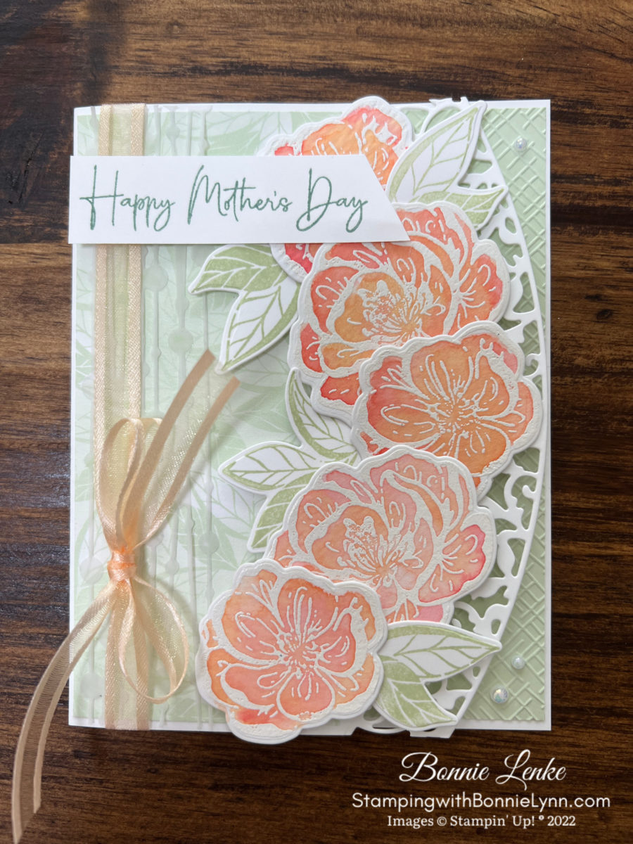 Stampin’ Up! Irresistible Blooms, an online exclusive is stunning. For this card I did some heat embossing and water coloring to make this beautiful card. Read on for directions on how to make this card or better yet watch the video.