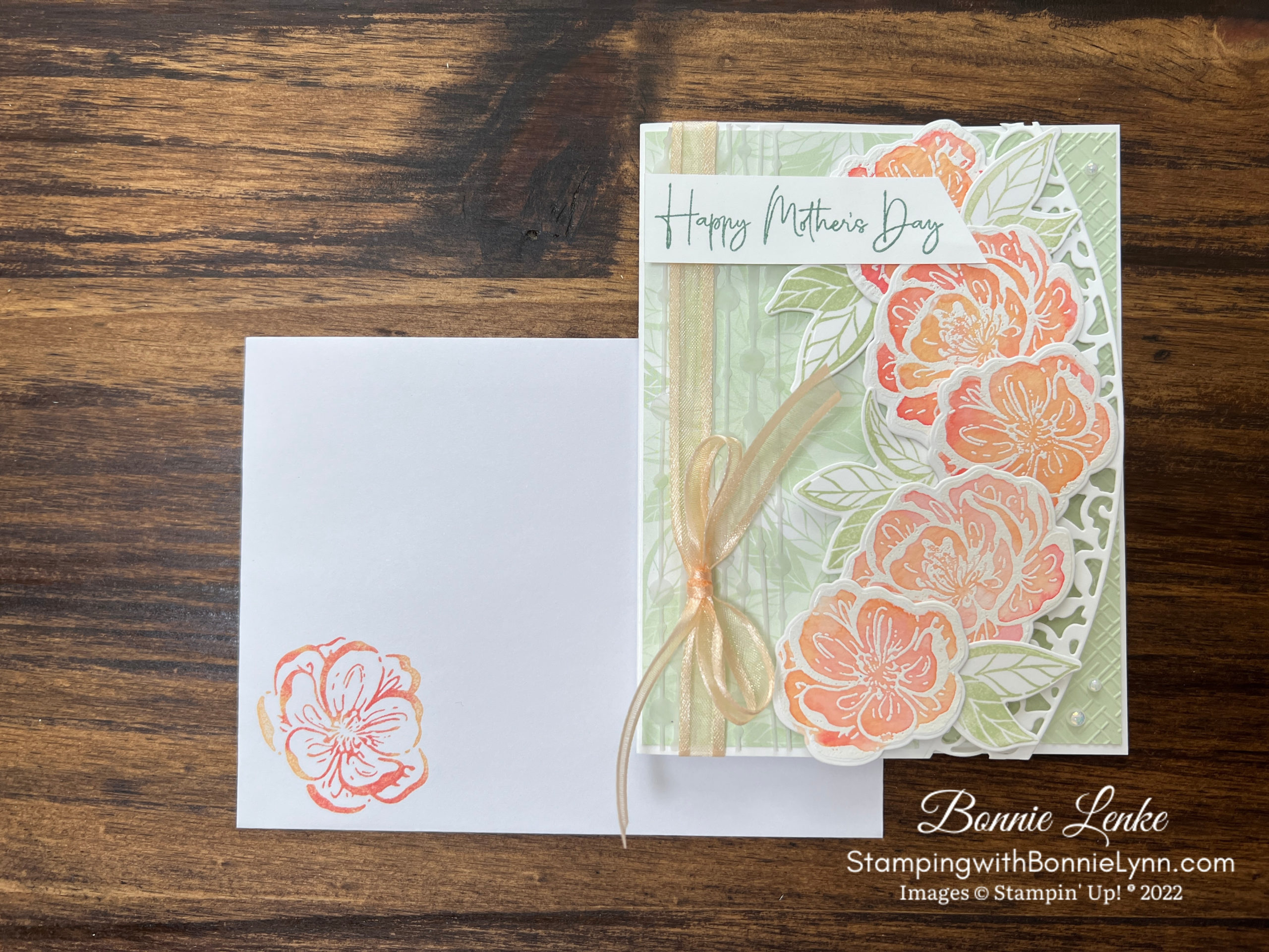 - Finish the envelope by stamping the small flower on the bottom left hand corner as you did for the card inside.