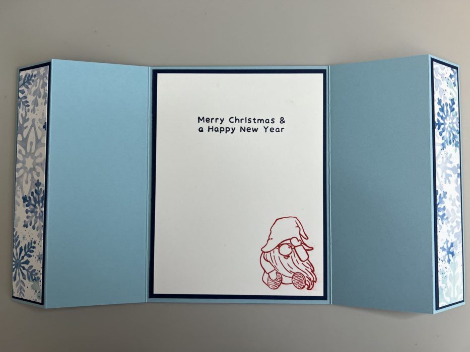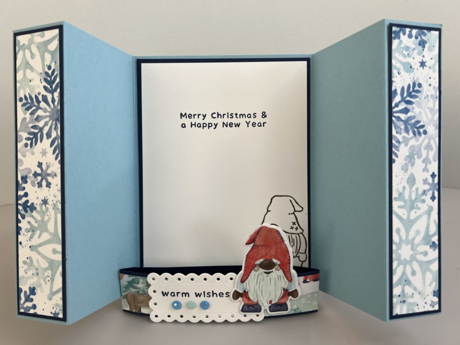 The Stampin’ Up! Kindest Gnomes are adorable characters. The one looked so cute on the band to this Kindest Gnomes Gatefold Card, who can resist such an adorable card. I would have to think that the person who receives this Christmas Card will know how special they are to you. I’ve made lots of standard Gatefold cards in the past but never a double fold one like this. It’s fun to see what you have pictured in your mind actually come to life and you like the way it turned out. It’s also nice that Stampin’ Up! makes Designer Series Paper that you can out with coordinating dies. The Stampin’ Up! Paper Trimmer also has a score blade on it or you can use a Score Board for all the scoring on this card. I hope you enjoy this card and video.