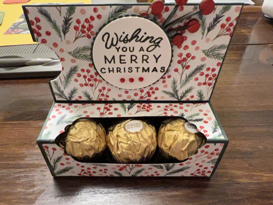 - Close the tabs on one end of box, insert 3 Ferrero Rocker and close the tabs on that end of box.