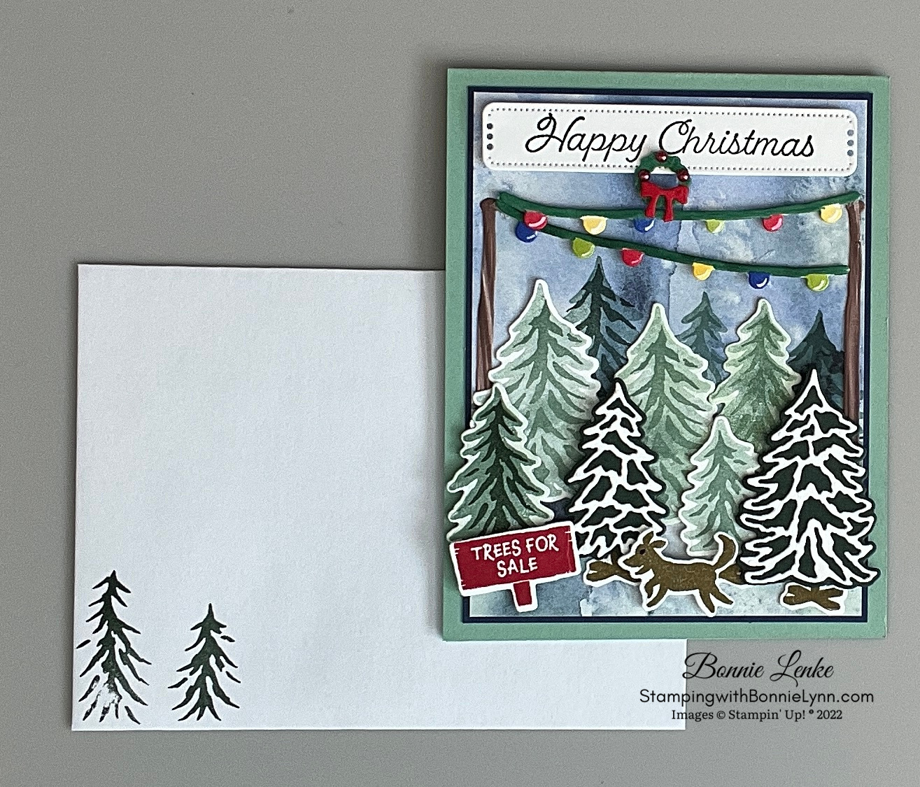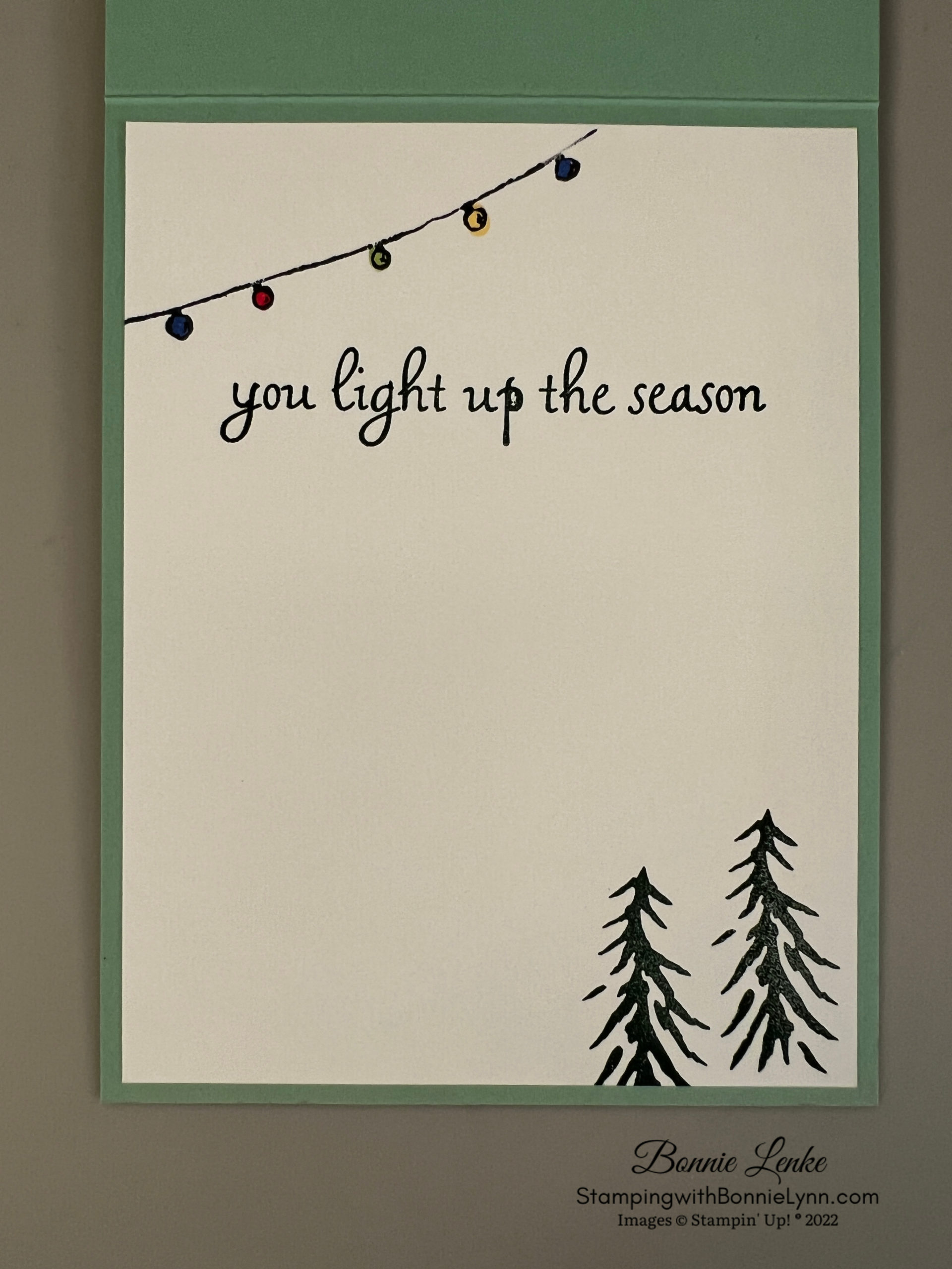 - Stamps: Trees for Sale, Brightest Glow or Happy Holly-Days (retired) for front greeting