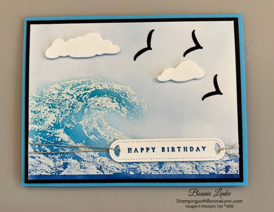 I needed a birthday card for one my great-nephews and thought he would enjoy this one. He’s still in high school and enjoys water so using Stampin’ Up! Waves of Inspiration stamp set seamed perfect to me.