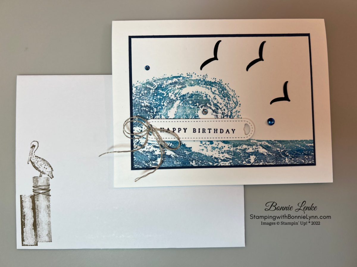 - The Envelope was complete by stamping the Seagull in Soft Suede Ink in the lower left corner.